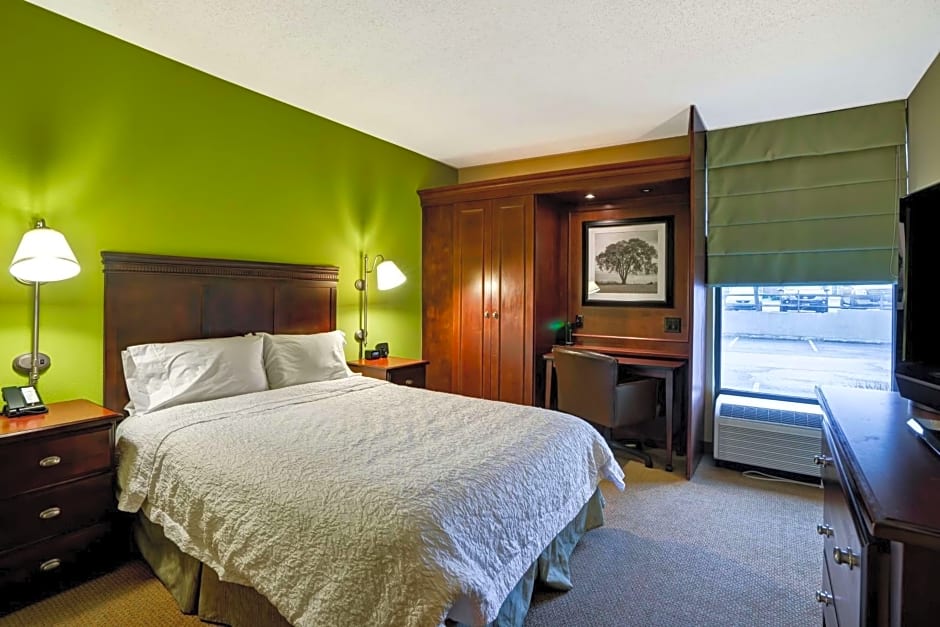 Kitchenette, living room, 32-inch HDTV, sofa bed, work desk, free WiFi Enjoy extra space and comfort in this one-bedroom suite which offers one king-sized clean and fresh Hampton bed®, plus a comfortable living area with sofa bed and ottomans. Stay entertained with a variety of movies and HD channels on the 32-inch HDTV. Business amenities include a large work desk and free WiFi access. Refresh in the bathroom with a WaterPik showerhead and fluffy towels. This room also offers a convenient kitchenette with microwave, refrigerator and coffeemaker to help you feel at home.